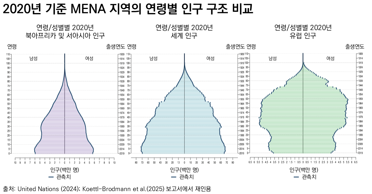 Koettl-Brodmann, Johannes et al. 2025. Global Megatrends and Human Development in the MENA Region: Preparing for Demographic, Climate and Technological Change. World Bank. https://documents1.worldbank.org/curated/en/099090825130022820/pdf/P502135-2cb78850-66d5-4c2e-80f6-ea2c21da5e53.pdf (검색일: 2026.01.18).